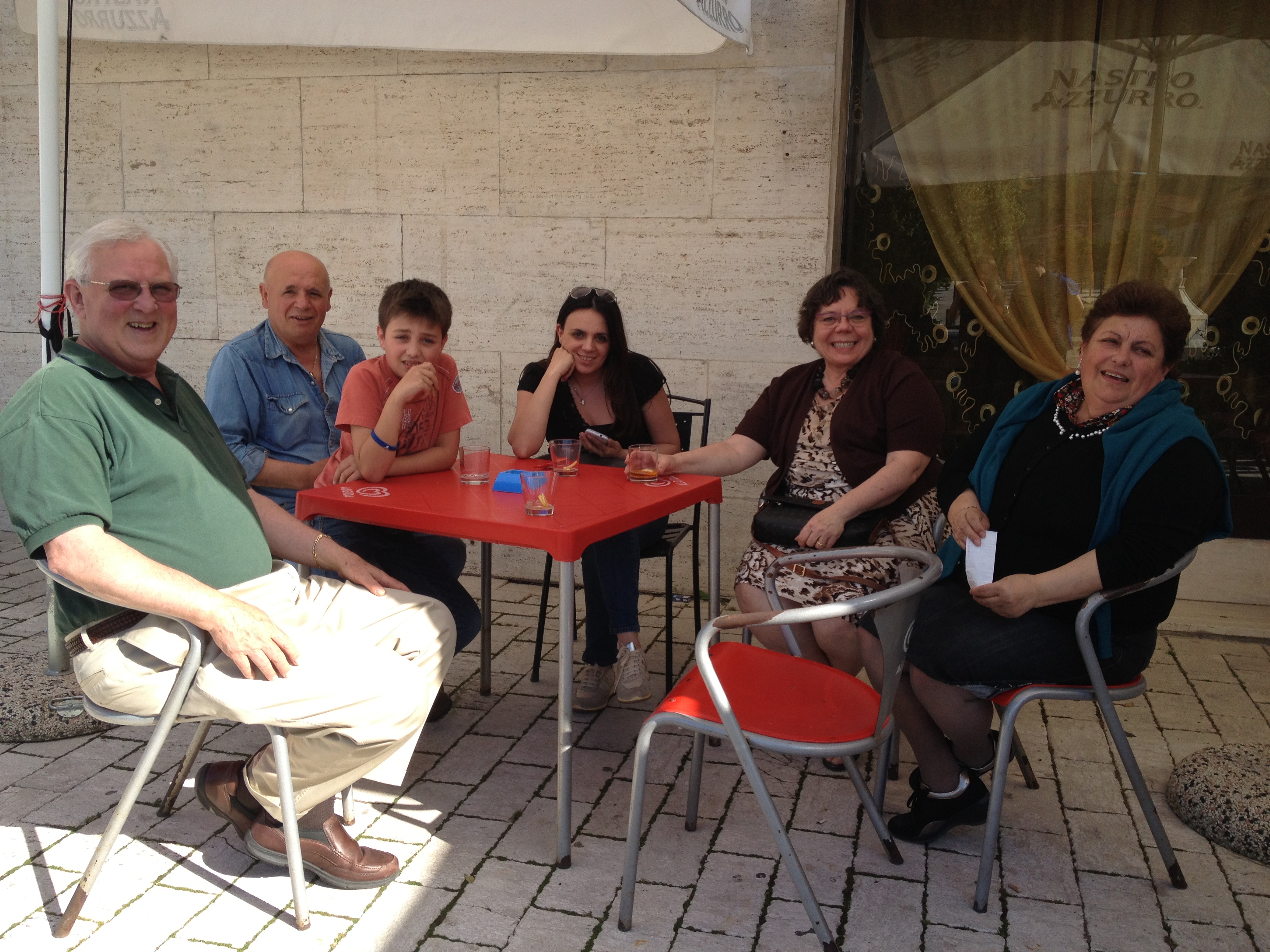 Our ace translator, information maven and all around great pal, Annarita Mancini, accompanied us to Bar Mixed Fantasy. Giuseppe, “Peppe”, Natale and his wife Antonella Lombardi are the owners of this local hot spot. Open from morning till – well morning, Bar Mixed Fantasy is one of the bars that locals use as a home away from home. Pontelandolfo has three bars and it seems like folks rotate between them but also have their favorite. Annarita tells us that young adults meet at Bar Mixed Fantasy before going out to dinner and discos. They often say they are just meeting for one drink but end up staying for a couple of hours. Why? Peppe and Antonella have great personalities and the thirty-somethings feel like they are hanging out with a neighbor – oh, they are. Another youngun told me, ” Peppe acts like one our friends and treats us like family.”