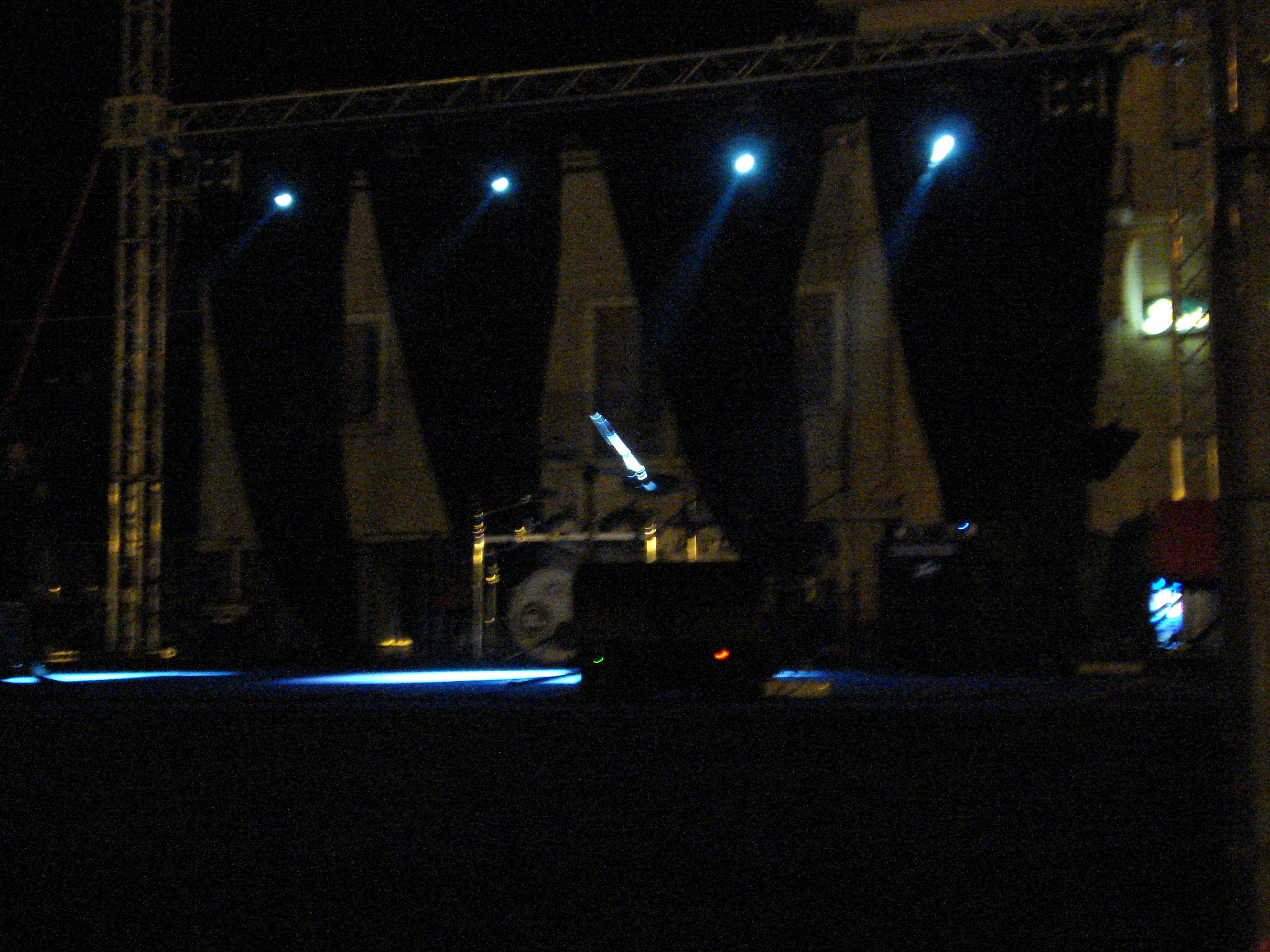 The pre show started at 9:50 – a lot earlier than the day before and almost on time!  (The show was scheduled to start at 9:30 PM.)   The MC – who over the week I began to loathe more and more – did his usual warmup.  When the first group came on stage, folks started pouring into the piazza – not thousands but a healthy crowd.  The opening act was a fabulous singer and band from Pontelandofo!  That explained the enthusiastic crowd.  I also discovered that the day before many of our talented young folks were performing out of town with our dance company, hence, could not be bopping and rocking in the piazza.  They made sure to be back for our home town singer,  Eleonora Di Marzo!  She was terrific and so was the lighting. From smoke spurts to strobes it was much better rock lighting than the night before.
