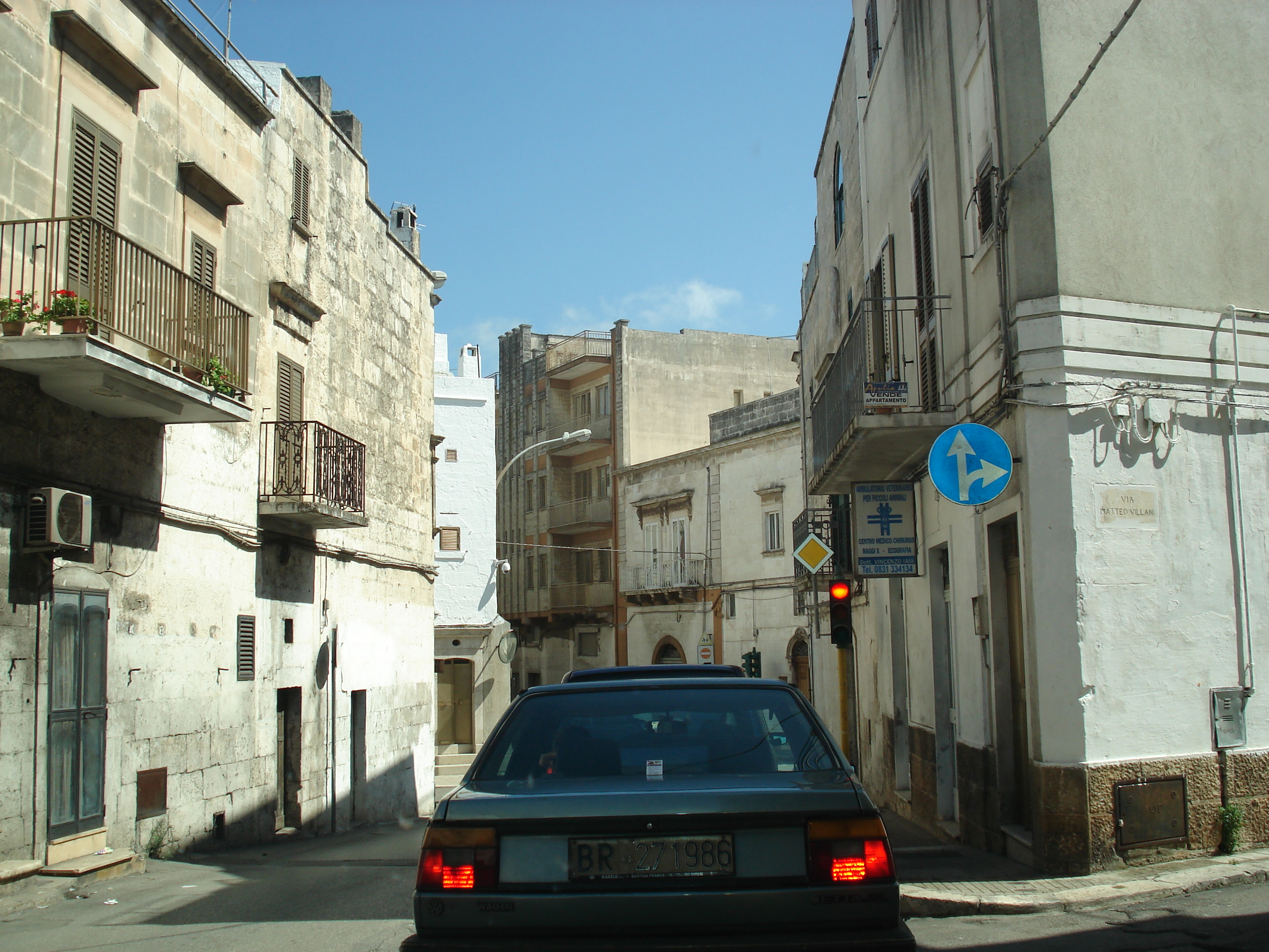 The only splashes of color in the town came from bright laundry fluttering in the breeze. I wonder if all that white makes people sterile? Suddenly, Jack – still searching the city for a restaurant – slammed on the brakes. I looked up and saw that the the teeny tiny street was blocked by a car driven by a young woman. She was obviously waiting for someone – I’m thinking her nonna or an invalid.
