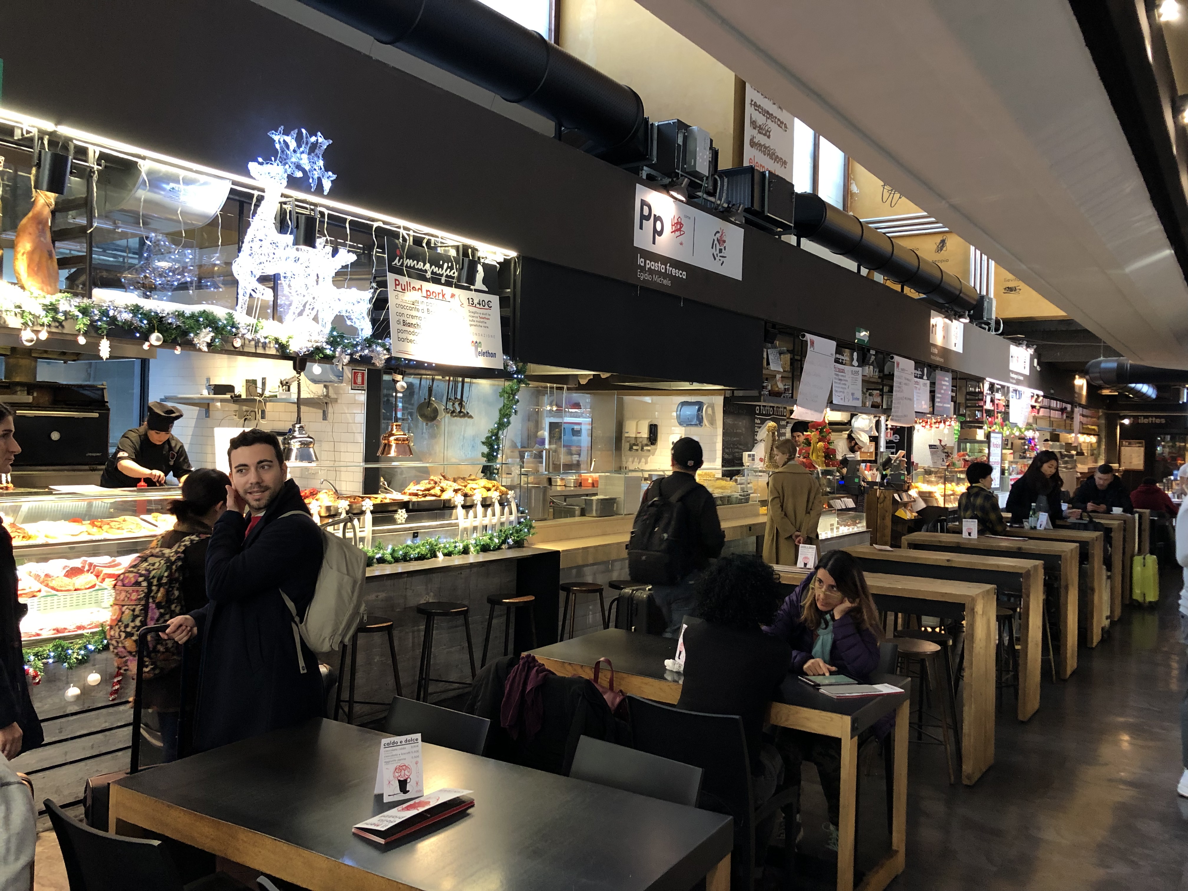 Schlepping our suitcases down the right side of the station – through the department stores and shops – we found the entrance to Il Mercato.