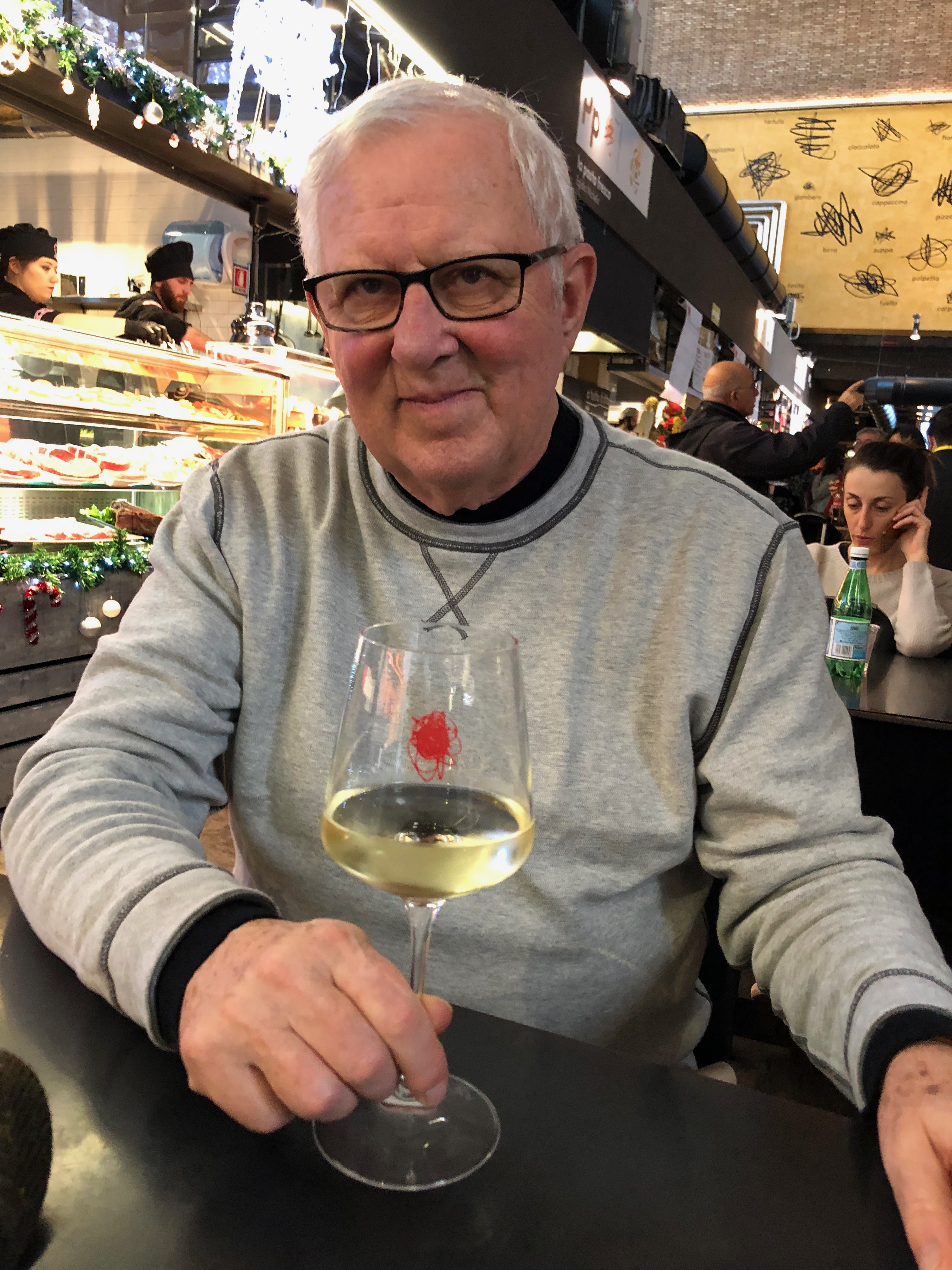 WOW! Being there at an off peak eating time, we were able to see the space in all of its utilitarian grandeur. There is a lot to see – seventeen food stalls, one restaurant, one pizzeria, one beer vendor and one large coffee bar. The restaurant, La Tavola, is designed for those who don’t want to wander around. It can be found one level up from the ground floor. Also, there is additional seating on the third level. (Note – what we would call the first floor is Piano Terra, second – Primo Piano, – third – Second Piano.) It was fun strolling past the stalls tempting us with interesting things to eat, cook with or grab for gifts. Even better was sniffing all of the great scents of Italian home style cooking. We grabbed two seats ordered drinks from the friendly cameriere, Jack sat with the luggage and I zapped from stall to stall taking it all in.