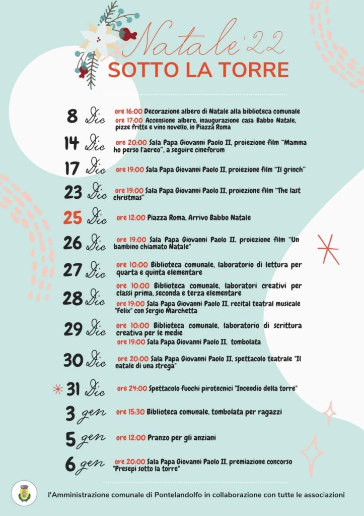 The air is crisp, bacala is in the cupboard and gifts are being hidden under beds. As volunteers work together, Christmas season in Pontelandolfo gets more exciting each year. The calendar of events kicked off on December 8th, the Feast of the Immaculate Conception, which seems to always be the beginning of the Christmas Season. Decorations are dusted off, nativity scenes are pulled out of storage, lovingly placed in a prominent place and the baking begins. Family homes fill up as sons and daughters who work far away return to the village they love best. The bars all take on a festive air with lots of hugging and kissing among friends who haven’t seen each other for a while and yet instantly reclaim the closeness they had as children. This years calendar – Christmas 22 Under the Tower – had me clapping my hands and dancing around the house. I couldn’t believe all the live performances scheduled in this year’s calendar. Sala Papa Giovanni Paolo II – a community room – was recently rehabbed and turned into a small theater. Complete with plush red velvet seats that cuddle your bottom. This season it has a full schedule of films, concerts and theatre. Wowza. So many choices!