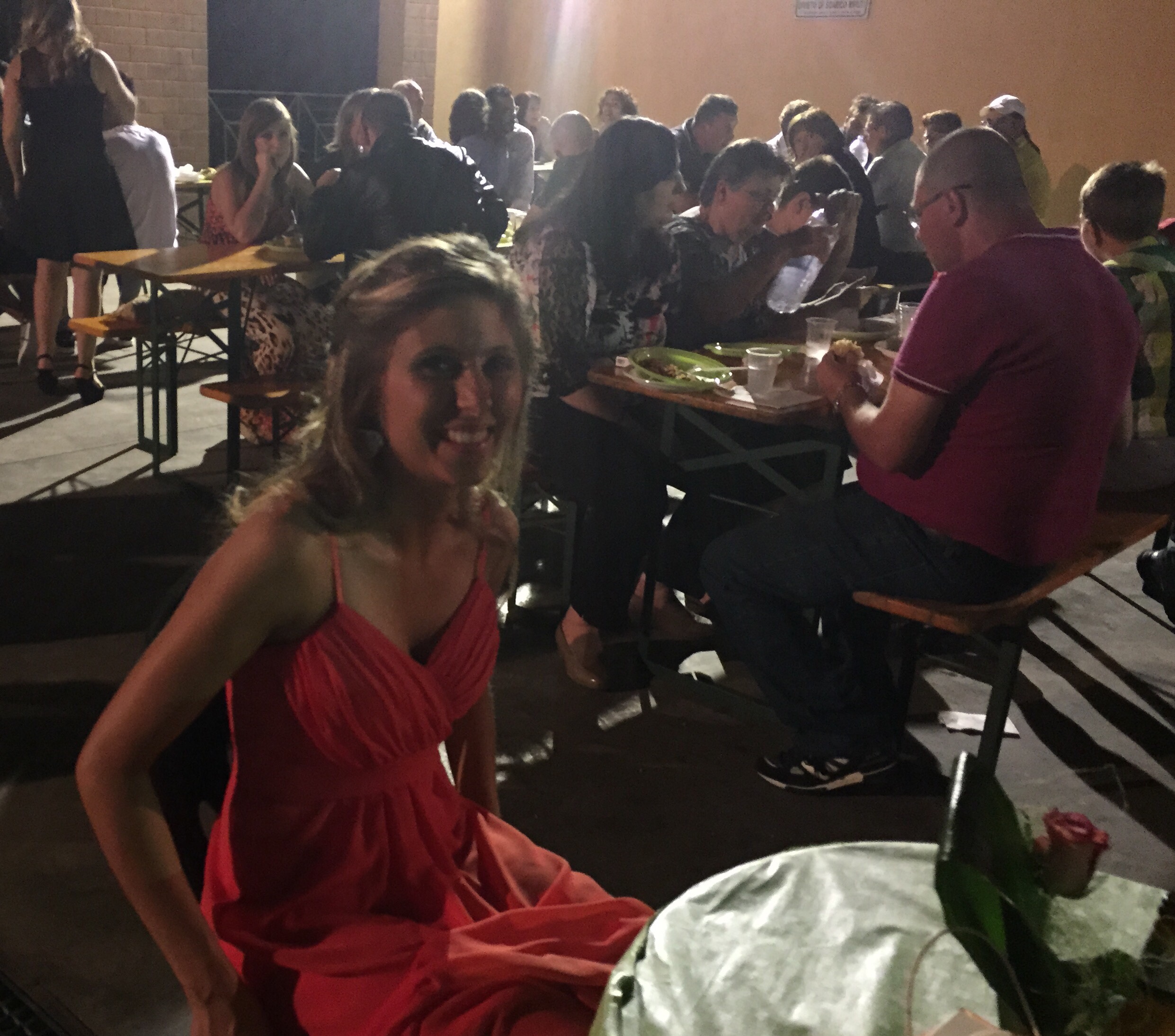 Music, not fruits and vegetables, filled the Pontelandolfo covered outdoor market. Bar Elimar’s Marilina and Elio are getting married! They invited customers, family and Pontelandolfo pals to help them pre-celebrate. Disco lights, a band, tables, chairs, enough food to fill millions, and friendly faces transformed the market into the hottest club in town and made this one night to remember.