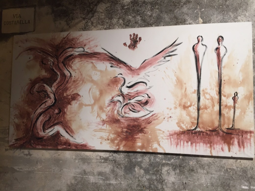 Before the dinosaurs roamed the earth, I visited Montmartre, the old artist’s quarter of Paris. Noooo, the artists weren’t old the quarter was old. During the 2016 Vinalia in Guardia Sanframondi I felt like I was walking back in time. The purpose of the Vinalia Festa is to reinforce the town’s position as a center for fabulous wines. What it also did was help me understand why American writers and artists were buying homes in the funky centro storico. Clare Galloway, may have been the first artist pioneer. She bought a house in 2011 for €10,000 and working alone transformed it into “Arthouse,” a B&B and artist studio. Clare, has been an avid supporter of the arts in this hilltop village.