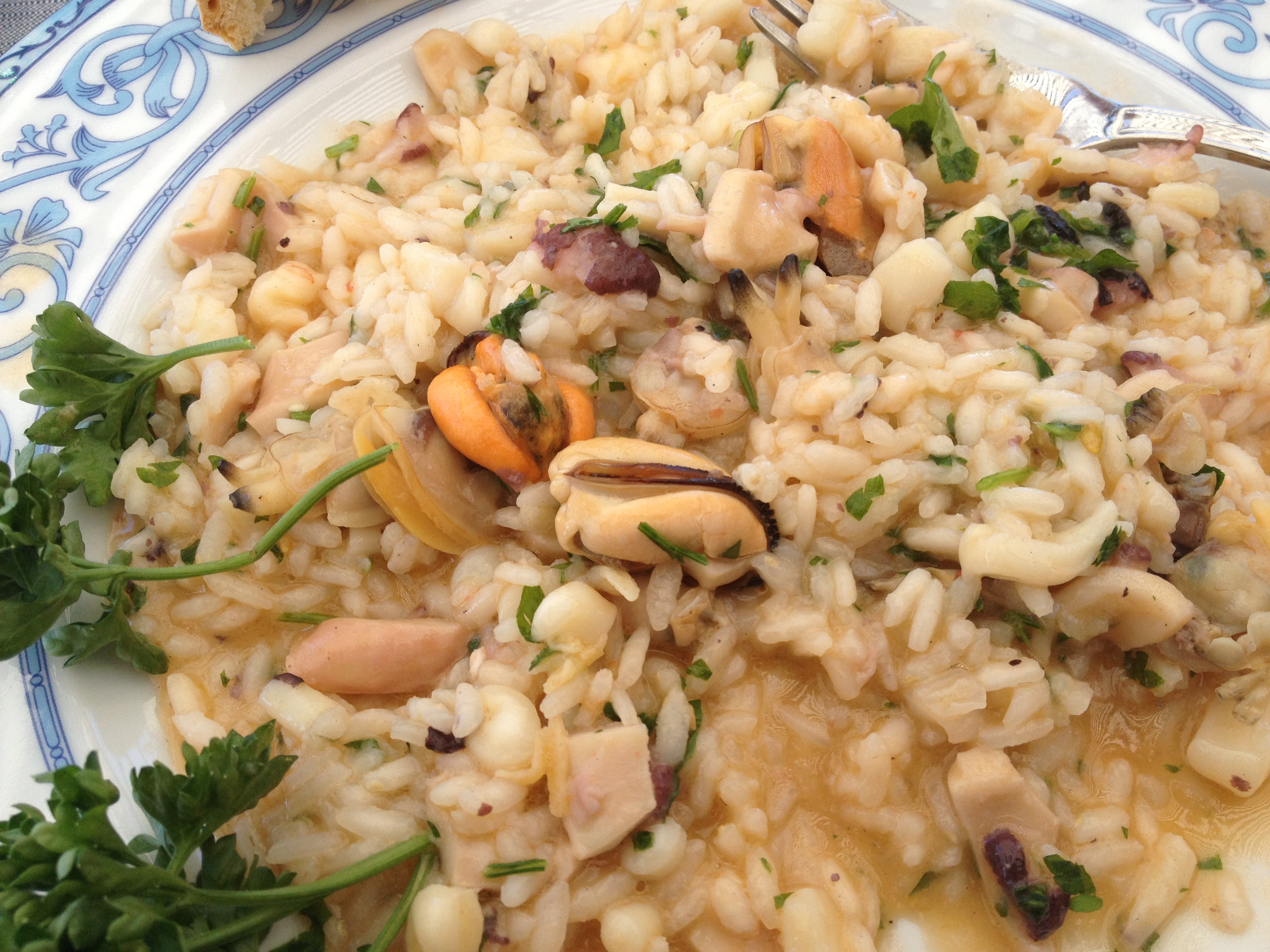 Once we were happily seated a bit further back, we concentrated on the incredible seafood. I’ll let you see the food and judge for your selves. (Pssst – My “risotto alla pescatore” was chock full of clams, mussels, scallops and pieces of calamari.)