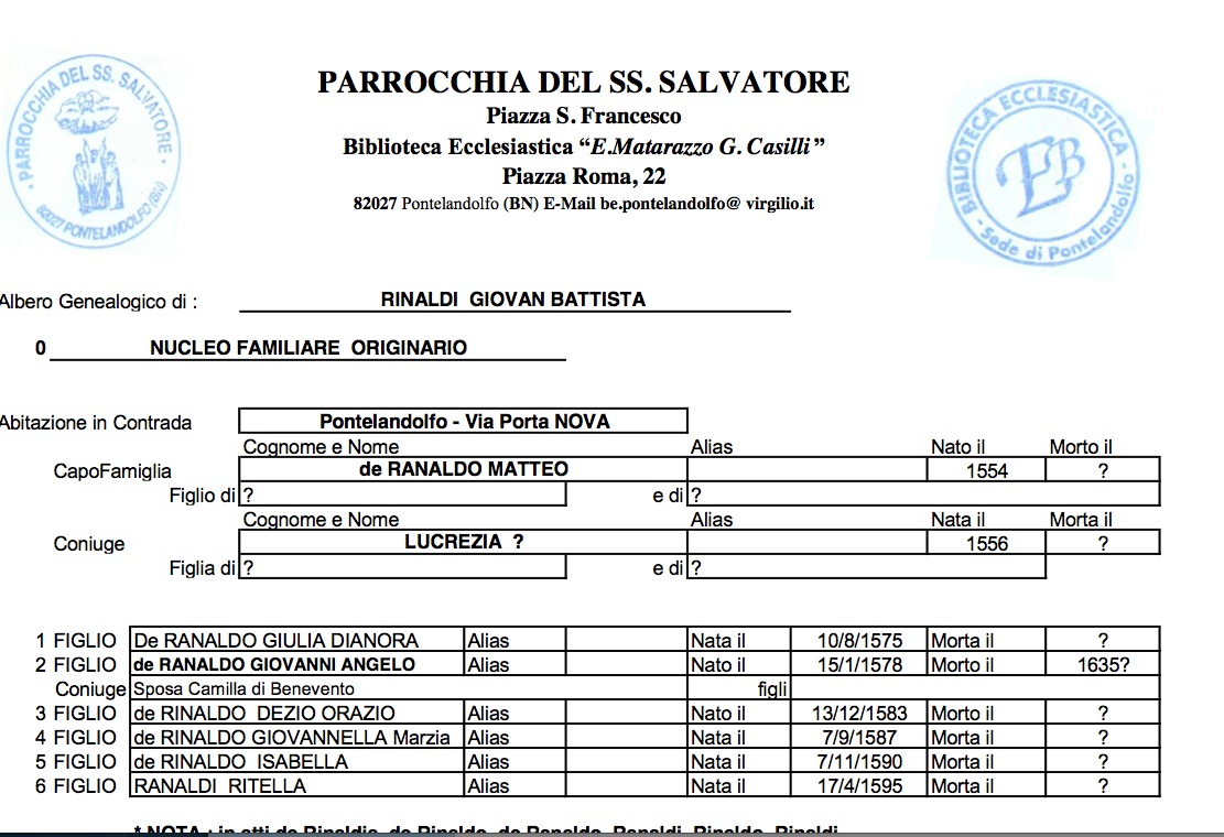 Come eravamo rimasti, finalmente posso inviarti la ricerca delle due Famiglie Rinaldi Mariantonia e Solla, spero che il tutto sia soddisfacente. (As we left it, finally I’m sending you the documents about the Rinaldi and Solla Familes – I hope this is satisfactory.)